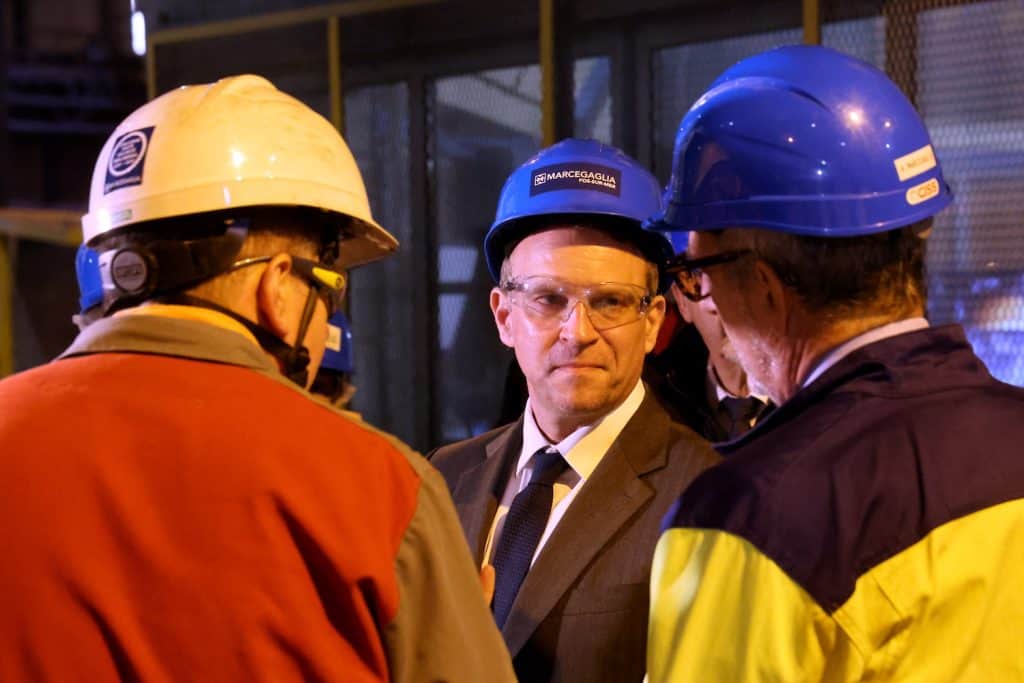 Le ministre de l'Indusrie, Marc Ferracci, en visite dans l'aciérie Marcegaglia, à Fos-sur-Mer. © Alain Robert