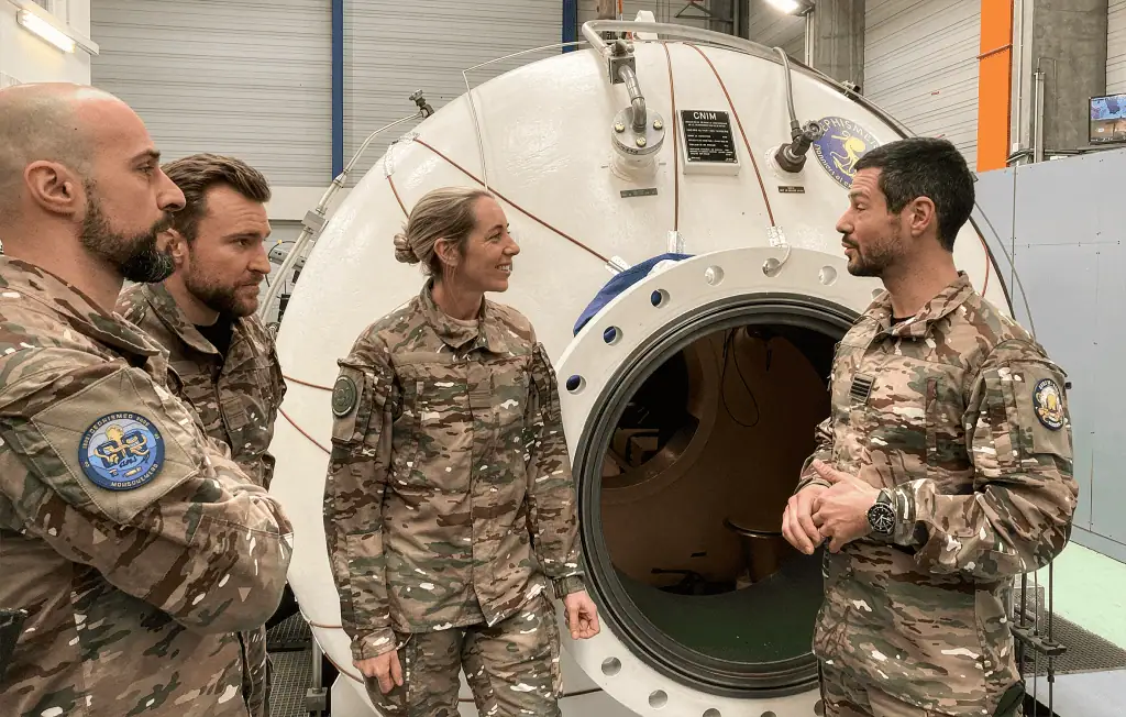 Sur la base navale de Toulon, depuis lundi dernier se déroule une expérimentation de plongée à saturation, avec recycleur électrique, à 265 mètres de profondeur.