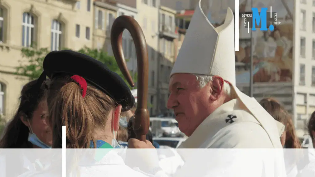Sous le regard de Nicolas Imbert, propriétaire du Four des navettes, de Benoît Payan et de Martine Vassal, Mgr Aveline s'apprête à bénir les navettes pour la Chandeleur.